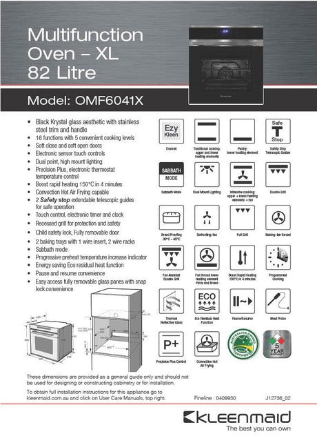 $1,499.00$2,699.00Unit price /UnavailableKleenmaid OMF6041X 60cm Multifunction Oven