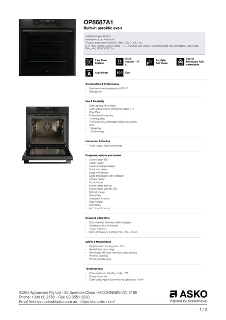$1,799.00Unit price /UnavailableASKO 60cm Pyrolytic Built-In Craft Oven Graphite Black OP8687A1 - ASKO Seconds Discount