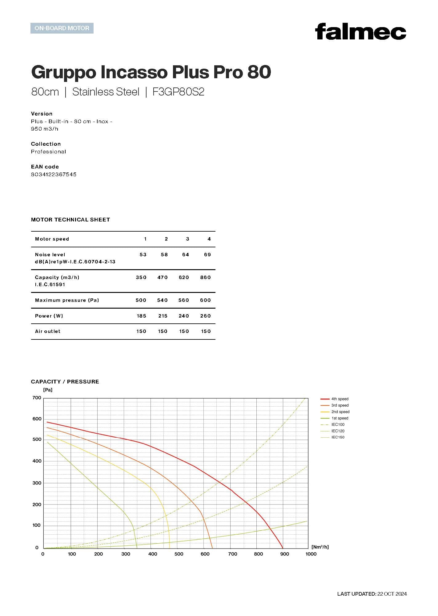 Falmec F3GP80S2 80cm Gruppo Incasso Plus Pro Undermount Rangehood, Stainless Steel, 950m3 is backordered and will ship as soon as it is back in stock.