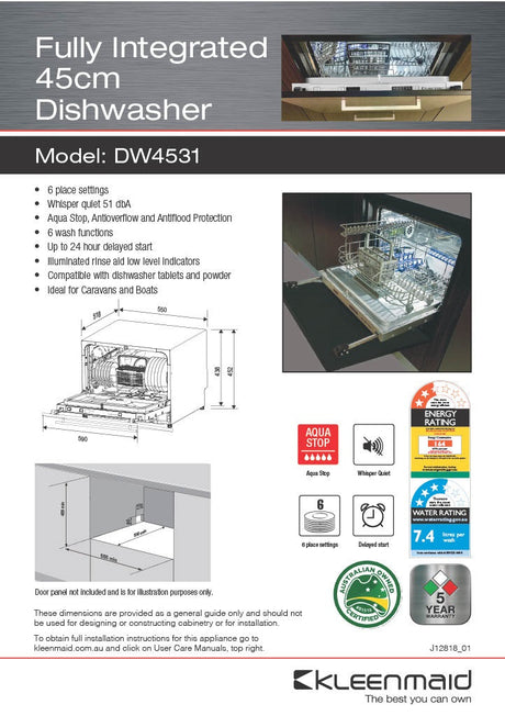 $779.00$1,449.00Unit price /UnavailableKleenmaid DW4531 45cm Fully Integrated Compact Dishwasher