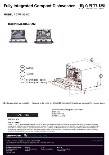 $849.00$1,249.00Unit price /UnavailableArtusi ADWFI55ND 60cm Fully Integrated Dishwasher