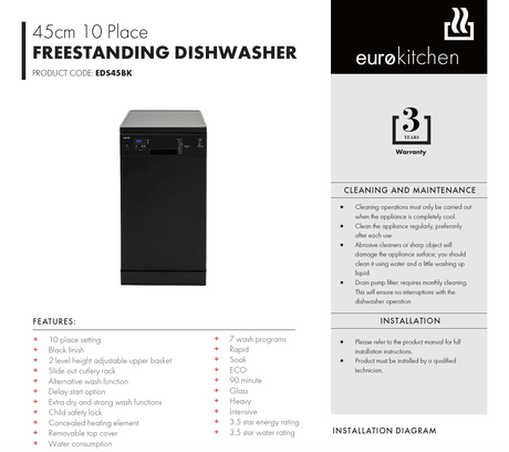 $878.00$1,079.00Unit price /UnavailableEuro Appliances EDS45BK 45cm Black Finish Dishwasher with Top Cutlery Draw