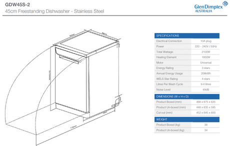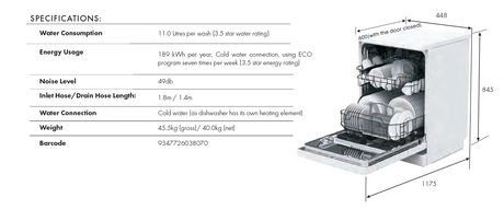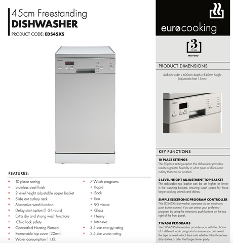 $748.00$999.00Unit price /UnavailableEuro Appliances EDS45XS 45cm Stainless Steel Dishwasher with Top Cutlery Draw
