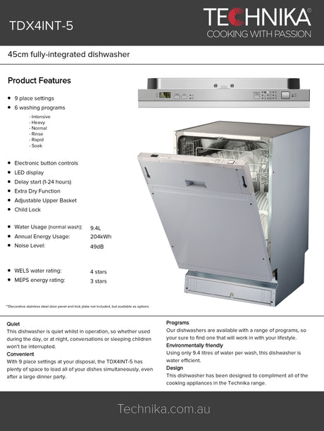 $649.00$1,299.00Unit price /UnavailableTechnika TDX4INT-5 45cm Integrated Dishwasher - Technika Seconds Discount