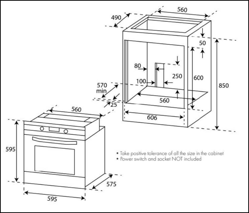 Width: 595mm x Height: 595mm x Depth: 575mm