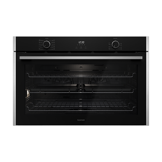 Euromaid EO910TS 90cm 10 Function Built-in Oven, Black Glass/Steel - Ex Display Discount