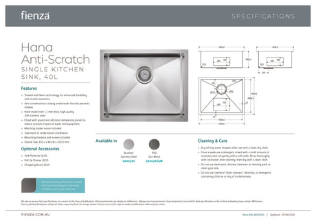 $475.00Unit price /UnavailableFienza 68402AS Hana Single Bowl Sink, Anti Scratch, Stainless Steel, 550x450x200mm