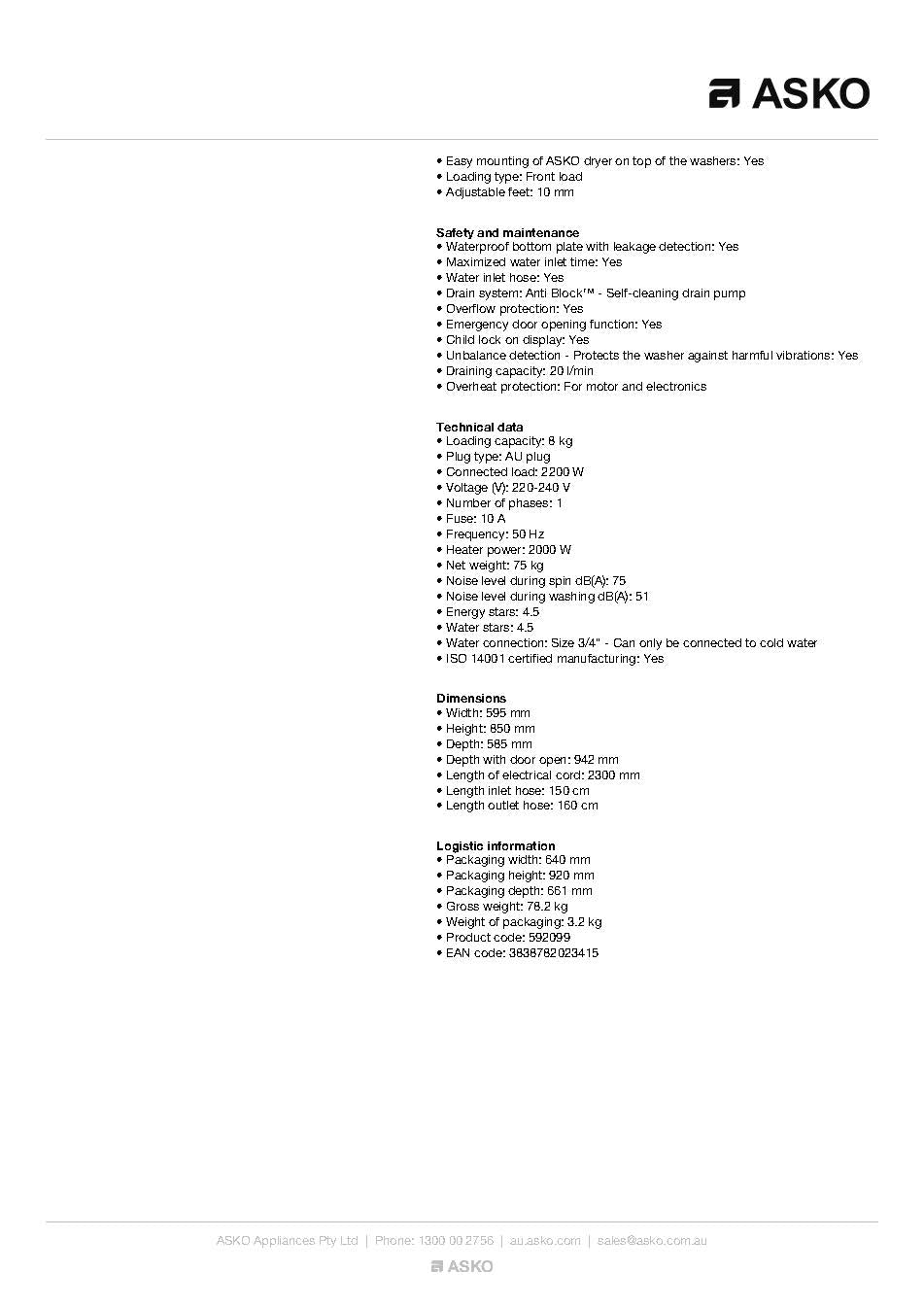 ASKO W2084C 8kg Front Load Washing Machine, White - Factory Seconds is backordered and will ship as soon as it is back in stock.