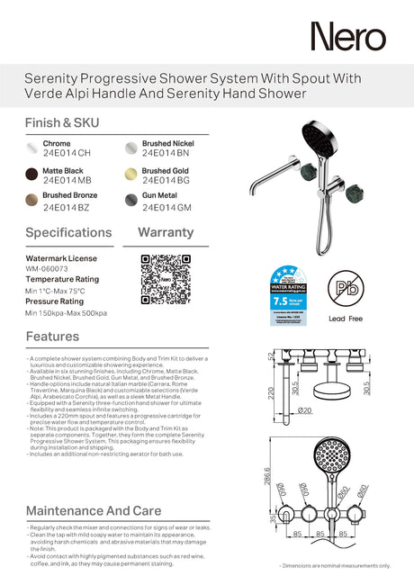$1,567.00$2,090.00Unit price /UnavailableNero Kara Progressive Shower System (Separate Plates) 230mm Brushed Nickel NR271903B230BN