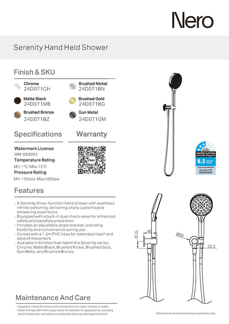 $321.00$429.00Unit price /UnavailableNero Serenity Hand Held Shower Brushed Bronze 24D071BZ