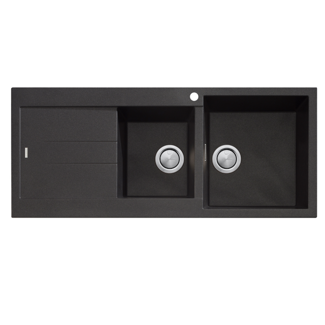 Oliveri Santorini 1 & 3/4 Right Hand Bowl Sink with Drainer, Topmount, 1140x480mm, with Overflow, Black, ST-BL1512 OF