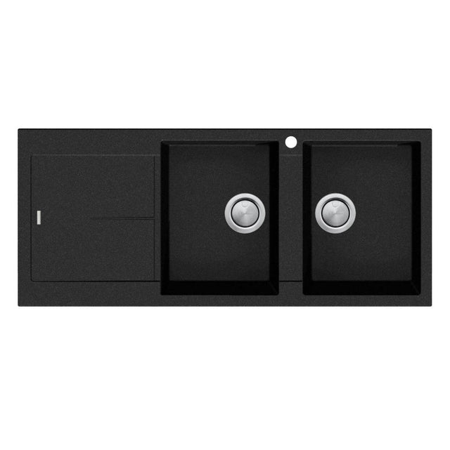 Oliveri Santorini Double Sink with Drainer, Right Hand Bowl, Topmount, 1140x480mm, Black, ST-BL1515 RHB