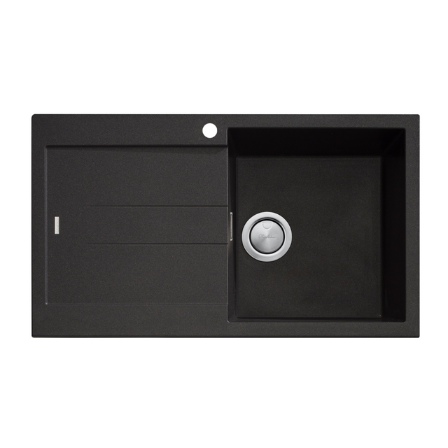 Oliveri Santorini Single Sink, Right Hand Bowl with Drainer, Topmount, 840x480mm, with Overflow, Black, ST-BL1522 OF