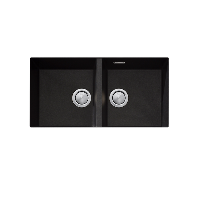 Oliveri Santorini Sink Double Bowl Sink, Undermount, 840x480mm, with Overflow, Black, ST-BL1563U OF - Black / Santorini is backordered and will ship as soon as it is back in stock.