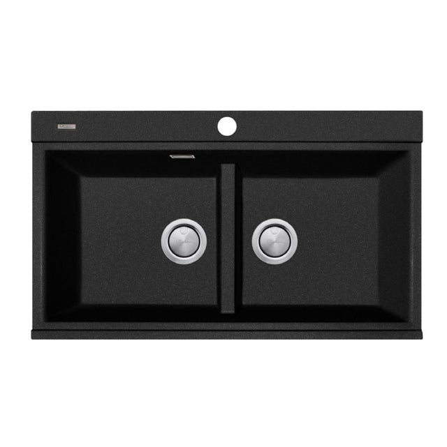 Oliveri Santorini Double Bowl Topmount Sink + Glass Top, 840x480mm, with Overflow, Black, ST-BL1566GT OF