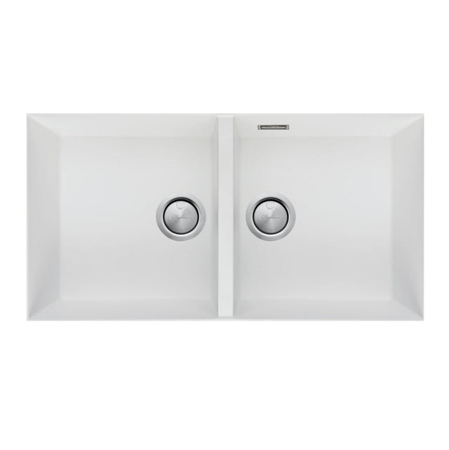Oliveri Santorini Double Bowl Sink, Undermount, 840x480mm, with Overflow, White, ST-WH1563U OF - White / Santorini is backordered and will ship as soon as it is back in stock.