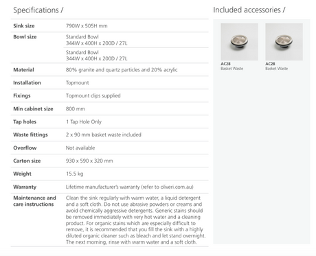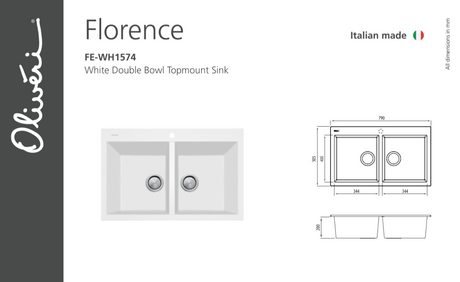 $1,359.00Unit price /Unavailable Oliveri Florence FE-WH1574 White Granite Kitchen Sink