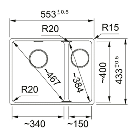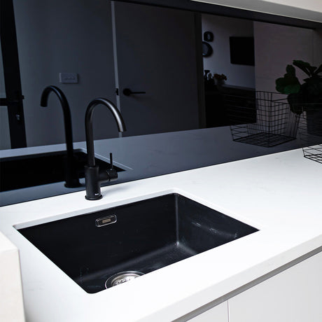 $1,275.00Unit price /Unavailable Oliveri Santorini Standard Bowl Sink, Undermount, 338x398mm, with Overflow, Black, ST-BL1530U OF