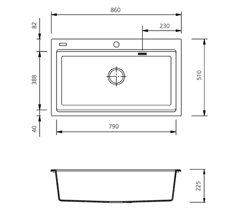 Abey Signus Single Bowl Topmount Sink, 860x500mm, Magma Black, D100B