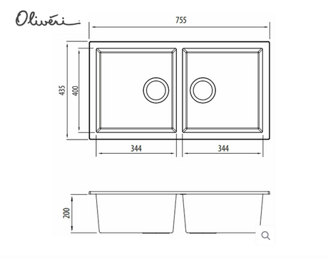 $1,499.00Unit price /UnavailableOliveri Florence FE-BL1573U Double Bowl Black Granite Undermount Sink