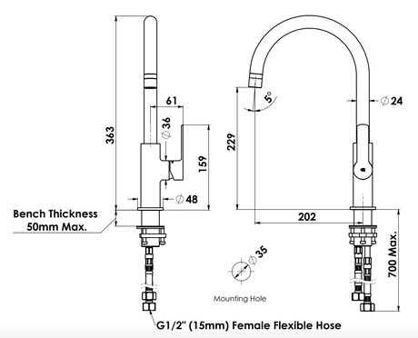 - Abey Lucia Gooseneck Mixer, Pullout, Side Lever, Chrome, SK5-AV $412.00- $486.00Unit price /Unavailable