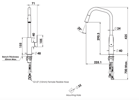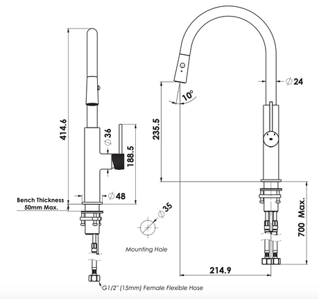 $424.00Unit price /UnavailableFienza Tono Pull Out Sink Mixer 233108B - Matte Black