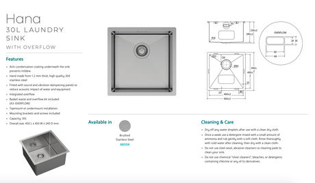 $343.00$357.00Unit price /UnavailableFienza 68504 Hana 504 30L Stainless Steel Laundry Sink with Overflow