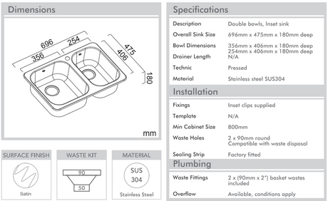 $979.00$1,089.00Unit price /UnavailableAbey PRC180 Brushed Stainless Steel Sink and Mixer Tap with Accessories