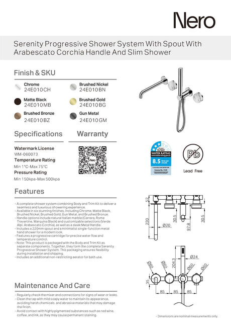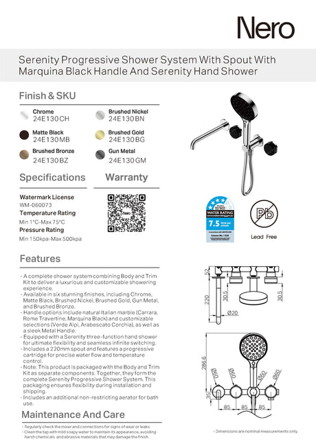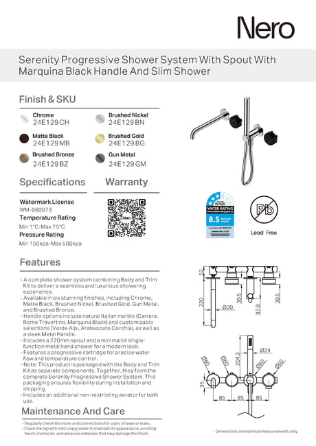 $1,331.00Unit price /Unavailable Nero Serenity Progressive Shower System w/ Spout w/ Carrara Handle And Slim Shower Chrome 24E007CH