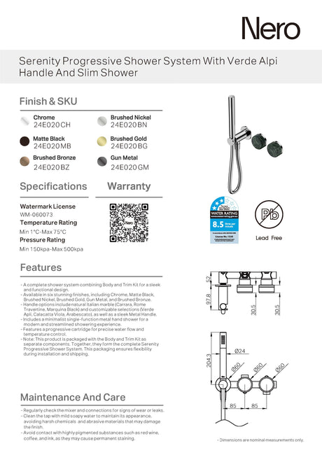 $940.00$1,254.00Unit price /UnavailableNero Serenity Progressive Shower System w/ Verde Alpi Handle And Slim Shower Gunmetal 24E020GM