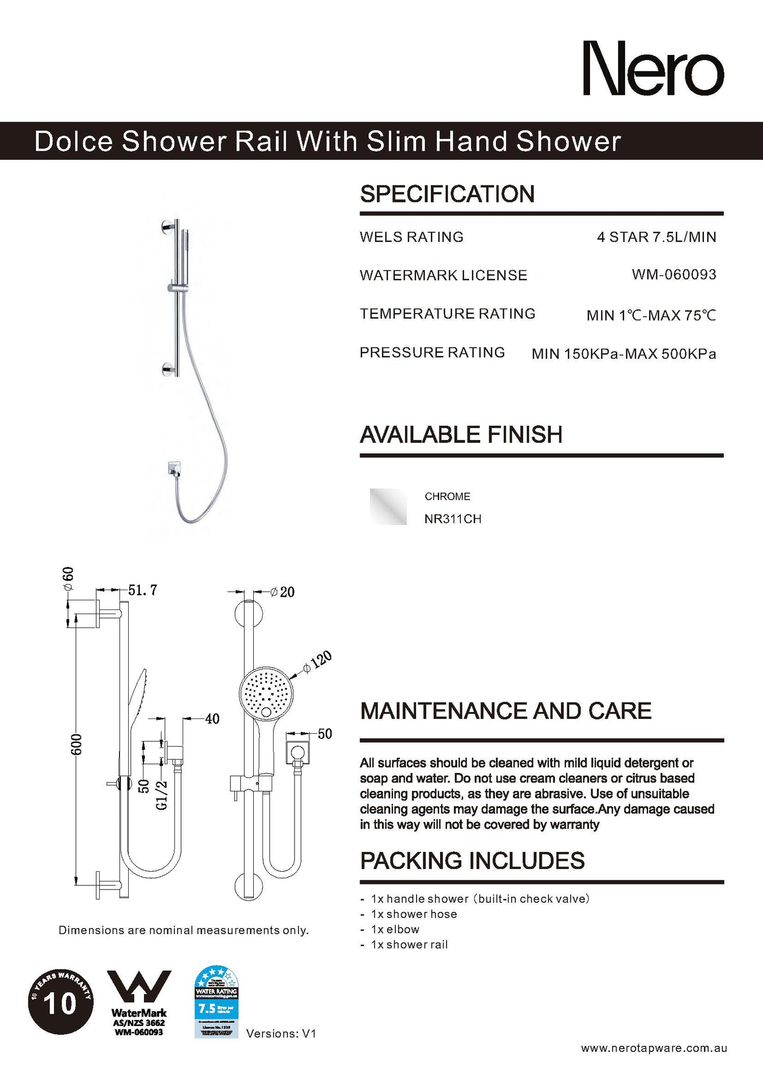 Nero Dolce Rain Shower Rail With Slim Hand Shower Chrome NR311CH is backordered and will ship as soon as it is back in stock.