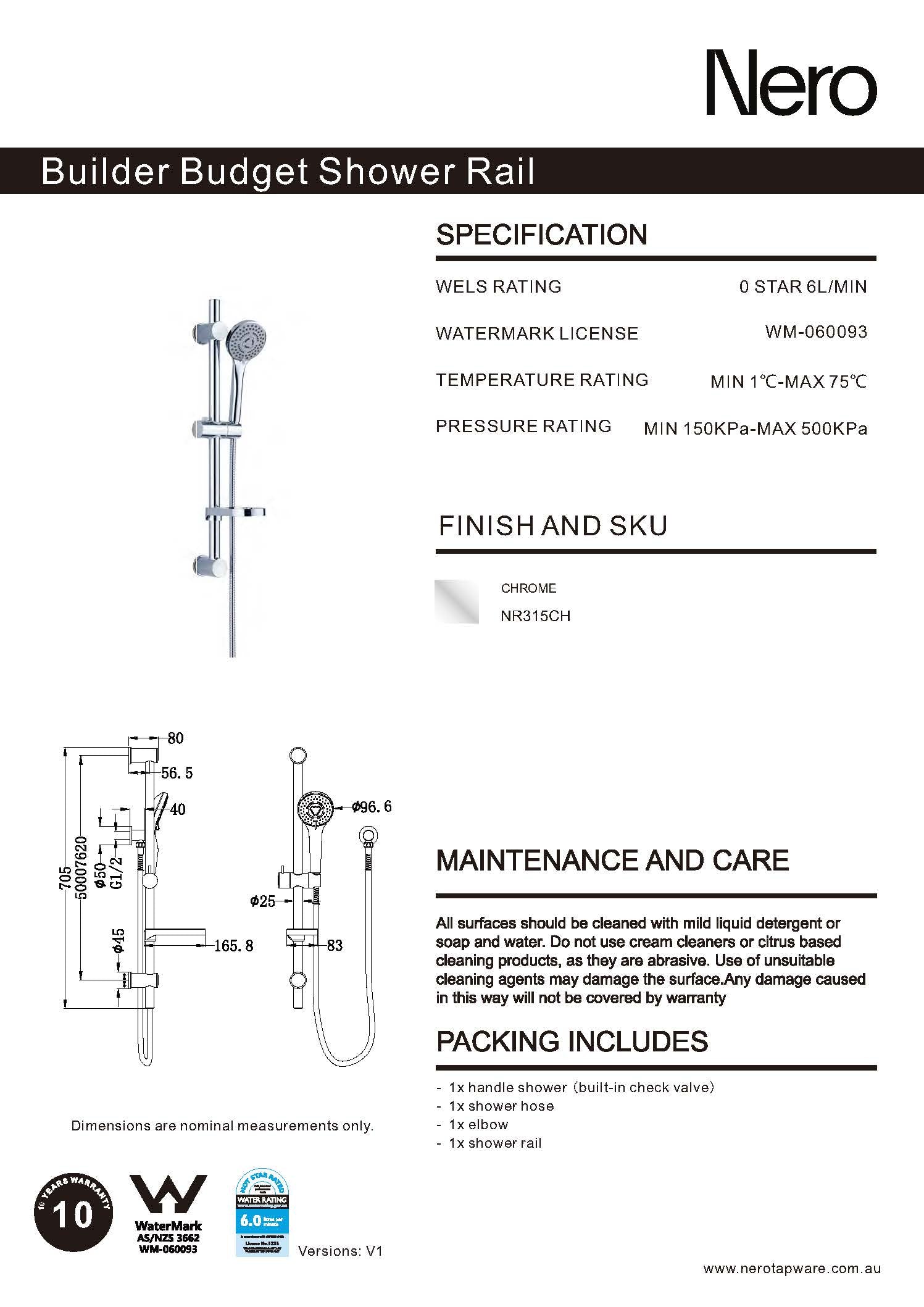Nero Builder Budget Rail Shower Chrome NR315CH
