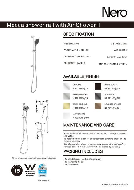 $494.00$660.00Unit price /UnavailableNero Mecca Shower Rail With Air Shower II Gun Metal NR221905GGM