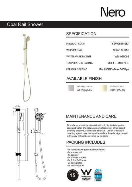 $535.00$715.00Unit price /UnavailableNero Opal Shower Rail With Air Shower II Brushed Gold NR251905GBG