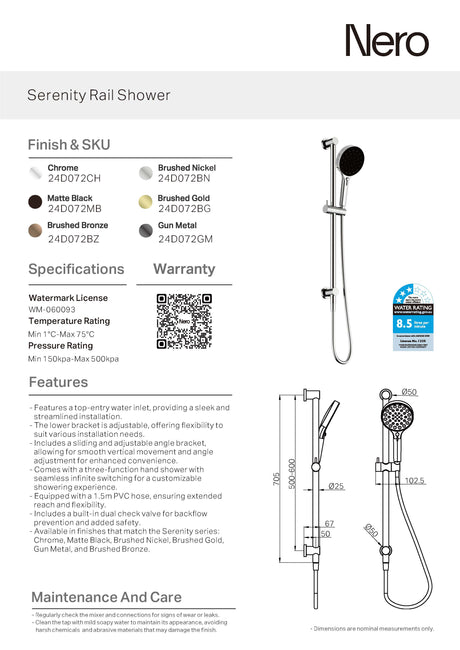 $494.00$660.00Unit price /UnavailableNero Serenity Rail Shower Brushed Bronze 24D072BZ