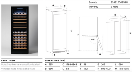 $2,299.00Unit price /UnavailableEuro Appliances E430WCDZBK 450 Litre 154 Bottle Wine Fridge