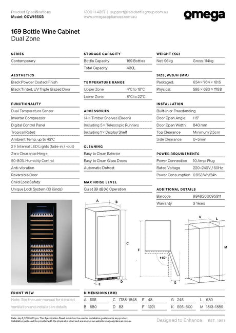$2,969.00Unit price /UnavailableOmega OCW166SB 169 Bottle Dual Zone Wine Cabinet