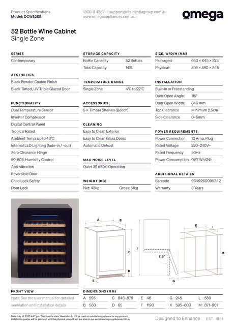 $1,199.00Unit price /UnavailableOmega OCW52SB 52 Bottle Single Zone Wine Cabinet