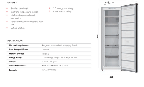 $649.00Unit price /UnavailableEuro Appliances EF204VFSS 204L Stainless Steel Upright Freezer - Online Only