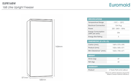 $303.00$449.00Unit price /UnavailableEuromaid EUFR168W 168L Upright Freezer - Online Only