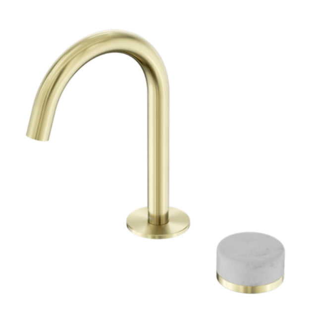 Nero Serenity Progressive Basin Mixer Arc Spout w/ Carrara Handle Brushed Gold 24E031BG