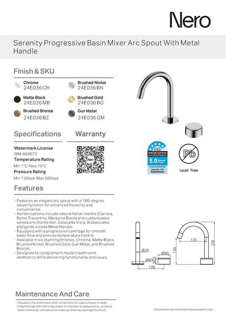 $598.00$798.60Unit price /UnavailableNero Serenity Progressive Basin Mixer Arc Spout w/ Verde Alpi Handle Gunmetal 24E032GM