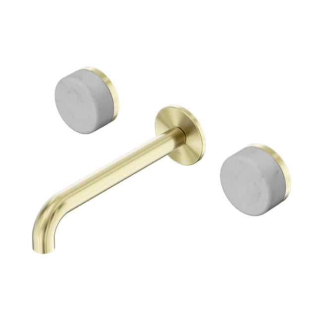 Nero Serenity Wall Basin Set 220mm Spout w/ Carrara Handle Brushed Gold 24D047BG