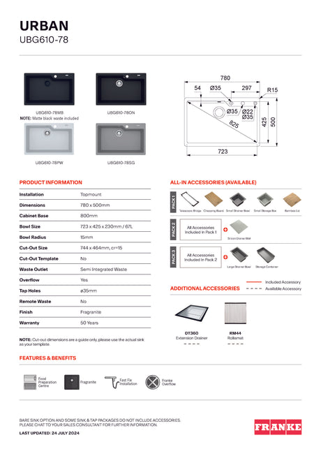 $860.00$1,049.00Unit price /UnavailableFranke UBG610-78PW Urban Fragranite 780mm Single Bowl Topmount Sink, Polar White