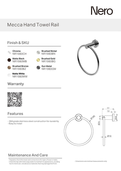 $50.00Unit price /UnavailableNero Mecca Hand Towel Ring Matte White NR1980MW