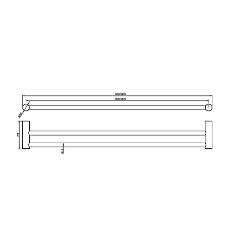 Abey Vela Double Towel Rail 760mm, Black, VDTR-B