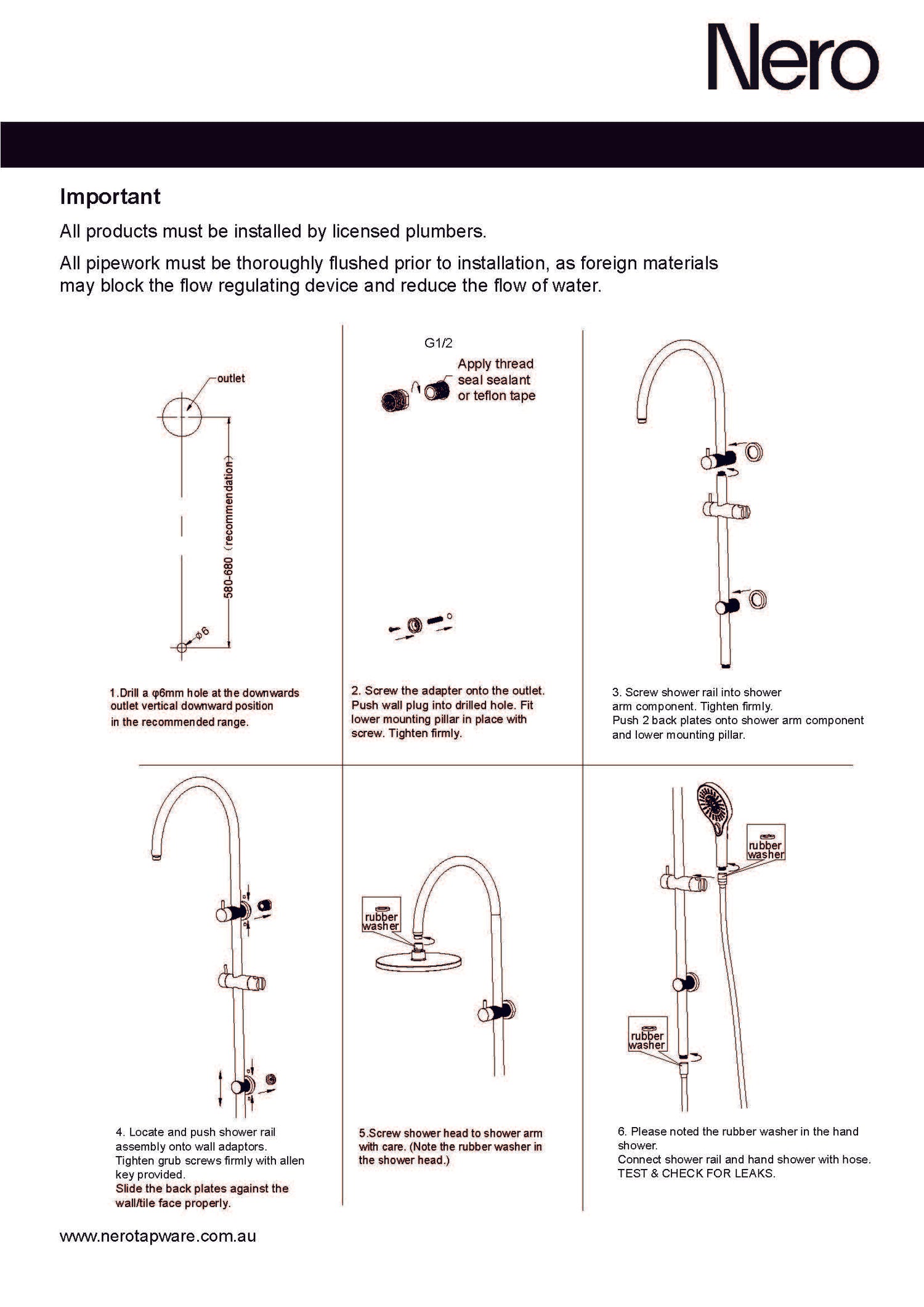 WELS Rating: Overhead Shower 9L/Min, 3 Star, Hand Shower 9L/Min, 3 Star