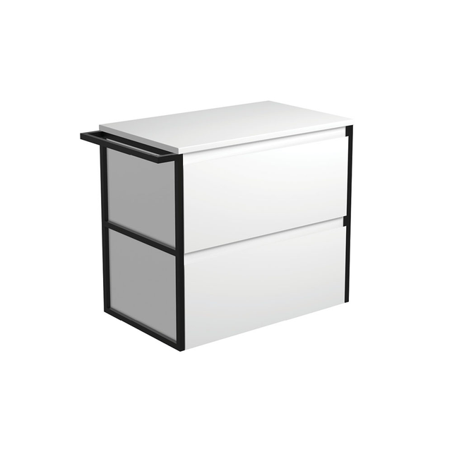 Fienza 75BWFT Amato 750 Wall Hung Cabinet, 1 Frame & 1 Towel Rail, Satin White, Cabinet Only