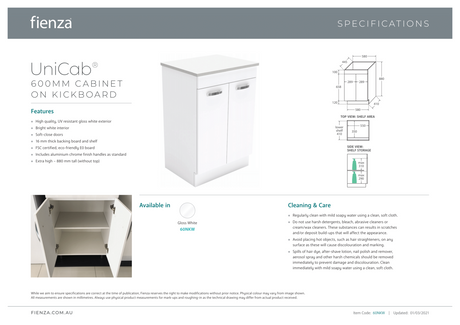 $488.00Unit price /UnavailableFienza Joli Edge JOL60C 600mm Gloss White Vanity On Kickboard