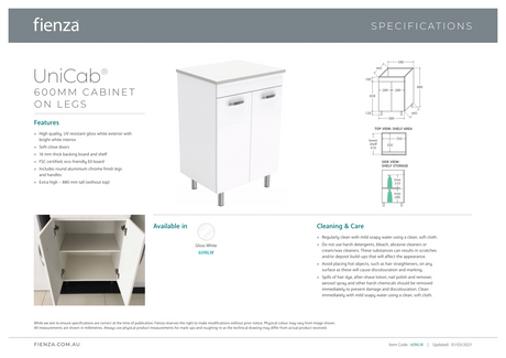 $488.00Unit price /UnavailableFienza JOL60NLW Joli Unicab 600mm Vanity on Legs, Gloss White